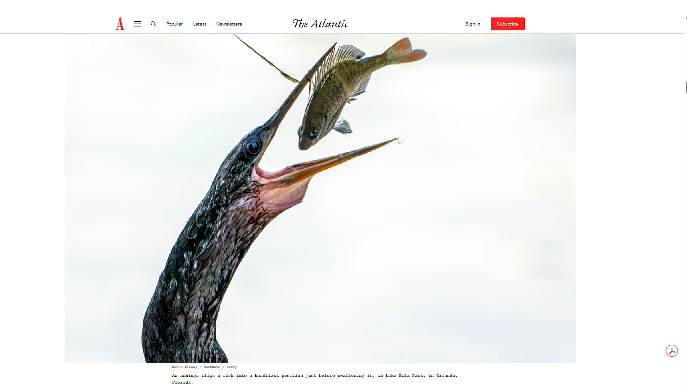 The photo shows an anhinga flipping a fish into position to swallow it headfirst, taken at Lake Eola Park in Orlando, Florida. It’s a reminder that incredible moments of wildlife action and powerful visual storytelling can unfold anywhere—even in the heart of a city.